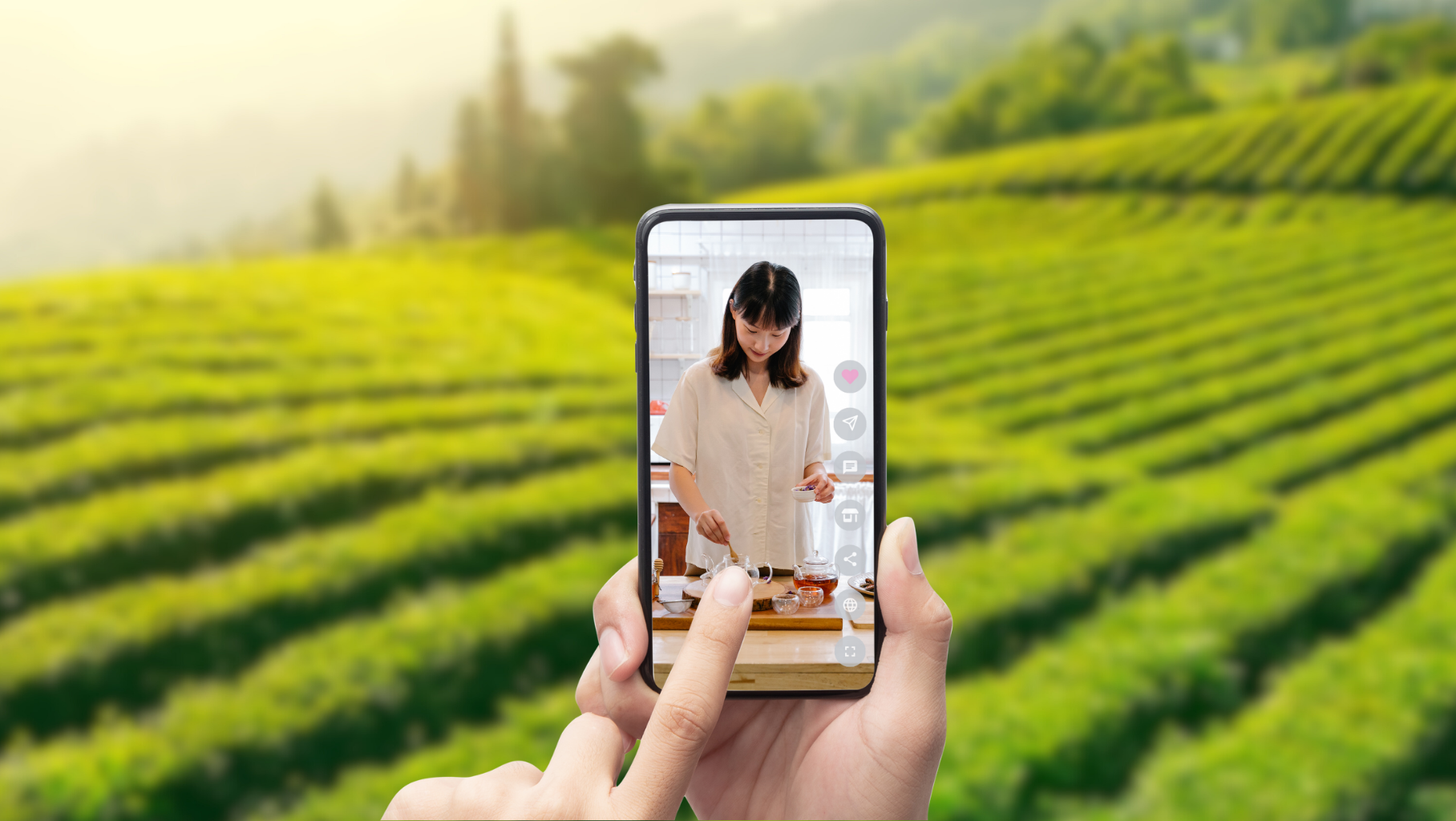 生配信でお茶関連商品を紹介・販売するライブコマースを実施します。